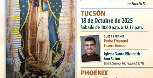 2:00 p.m. – 4:15 p.m.: Program with special guest speaker Fr. Nahrgang of the Diocese of Phoenix. Don't miss the Bishop's blessing procession, Rosary, Adoration, Benediction.