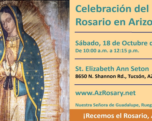 Por favor descargue y comparta las imágenes para invitar a sus familiares y amigos a la Celebración del Rosario en Arizona. Comparta las imágenes en las redes sociales. Incluya una imagen en una carta electrónica, un documento, o una presentación de diapositivas. Pida a la persona que prepara el boletín parroquial que incluya una imagen en el boletín o en la presentación digital que se proyecta antes de la Misa. ¡Muchísimas gracias!